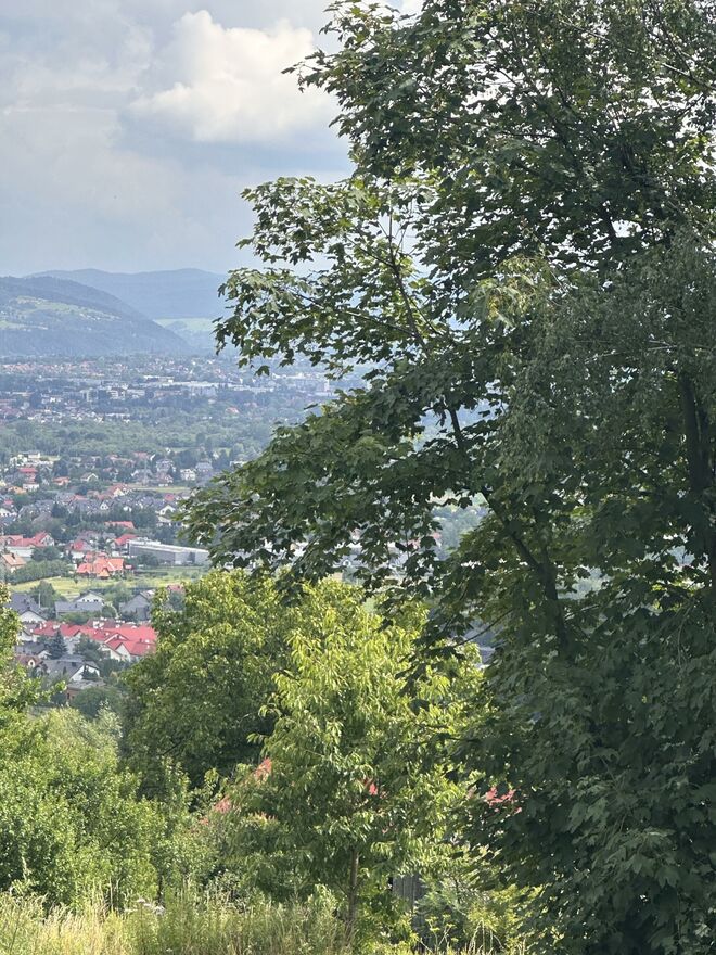 Widok na panoramę Nowego Sącza, w tle Beskid Sądecki
